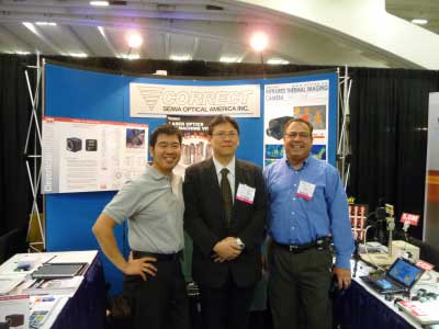 While 3Q Enterprises (so far) do not operate in semiconductor production, we went tnere primarily to contact a few would-be partner in the commercial imaging / machine vision / research support market place. The picture on the left is a booth at Seiwa America Inc., doing the ad-hoc demonstration of OWLink adaptor kit attached to an HDMI video camera, showing the high definition image of the array of flash memory device dues on a wafer. The industry is going for higher definition image for automated processing, and the cabling between the production floor and the image processing engine is a problem. We hope to provide the effective solution to this market place and if the dialogue with these people are of any indication, we will get there soon. |